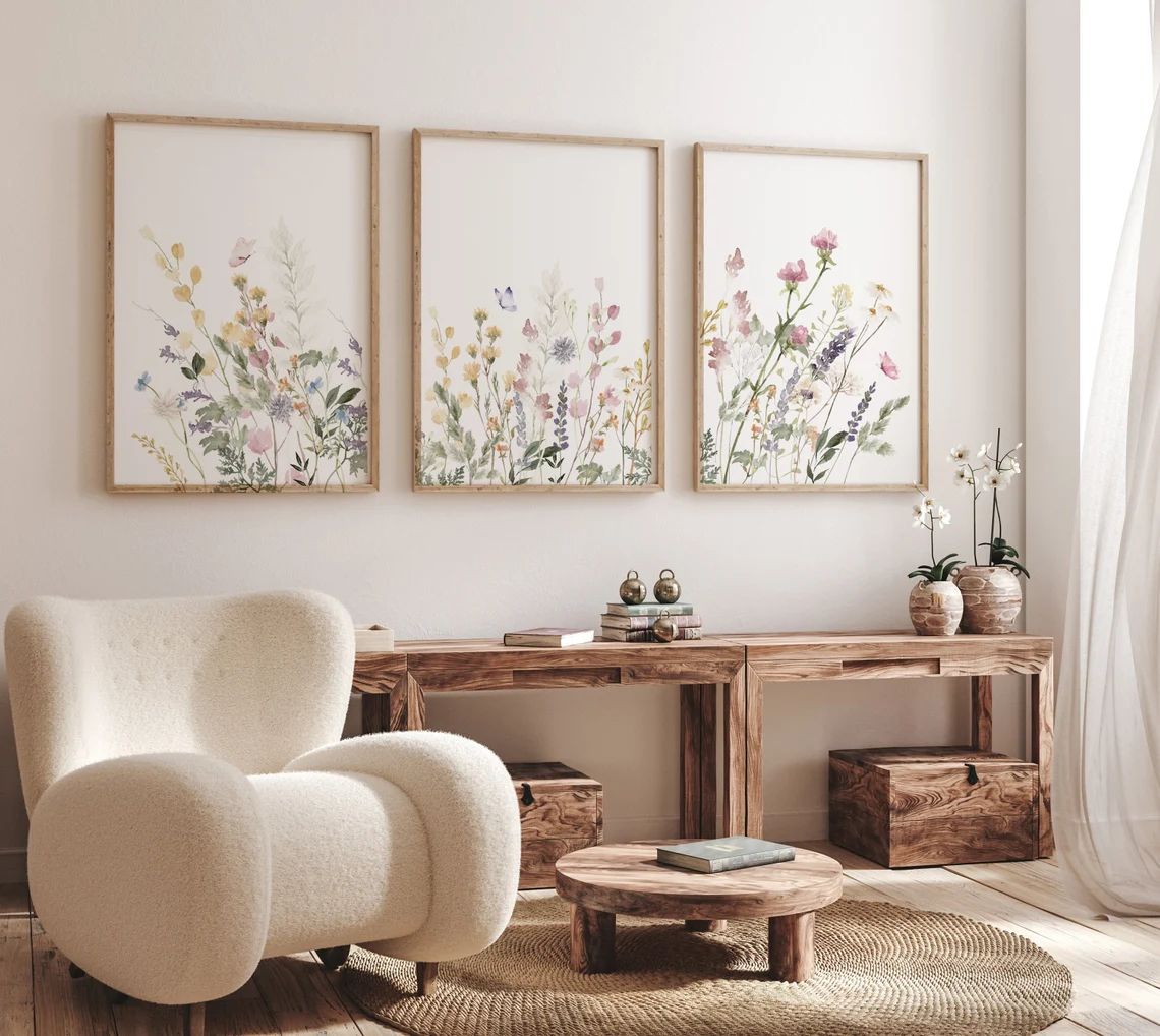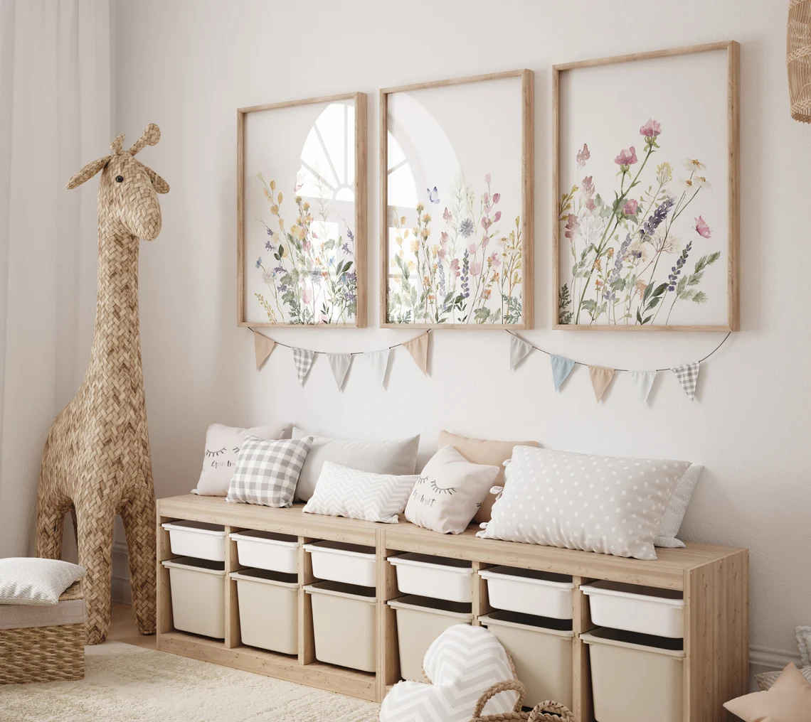 Wildflower Nursery Decor, boho Nursery, Floral Nursery, Girl Nursery Decor, flower nursery, vintage flower nursery print, Watercolor Botanical Print Set, Floral Wall Decor